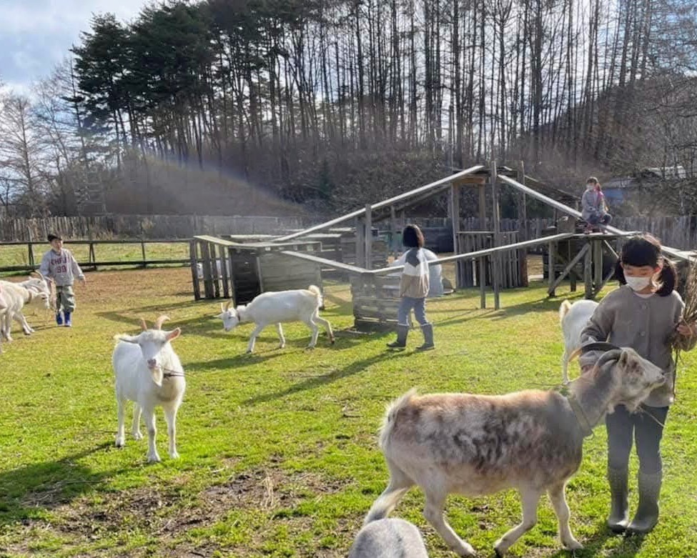 NPO法人飯綱高原よっこらしょは、標高1,000mの長野市飯綱高原で活動しています。地域の声に応え、遊休農地の再生、森林資源の活用、ヤギとの活動を続けてきました。石だらけの土地を子どもたちと共に開墾し、今では、種まきや収穫を体験できる場となっています。森林で伐採した木をヤギ小屋や薪、ベンチづくりに活用し、ヤギは、幼稚園や学校からふれ合い体験や飼育の要望があり、子どもたちに癒しと命の学びを届ける存在になりました。