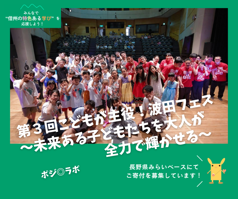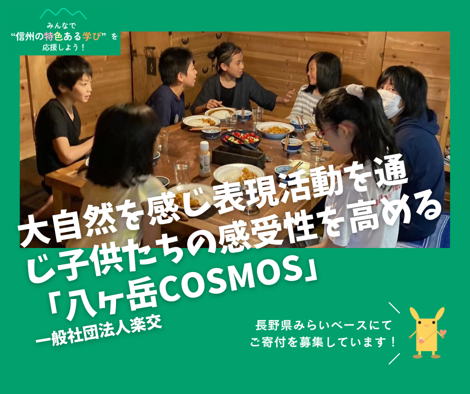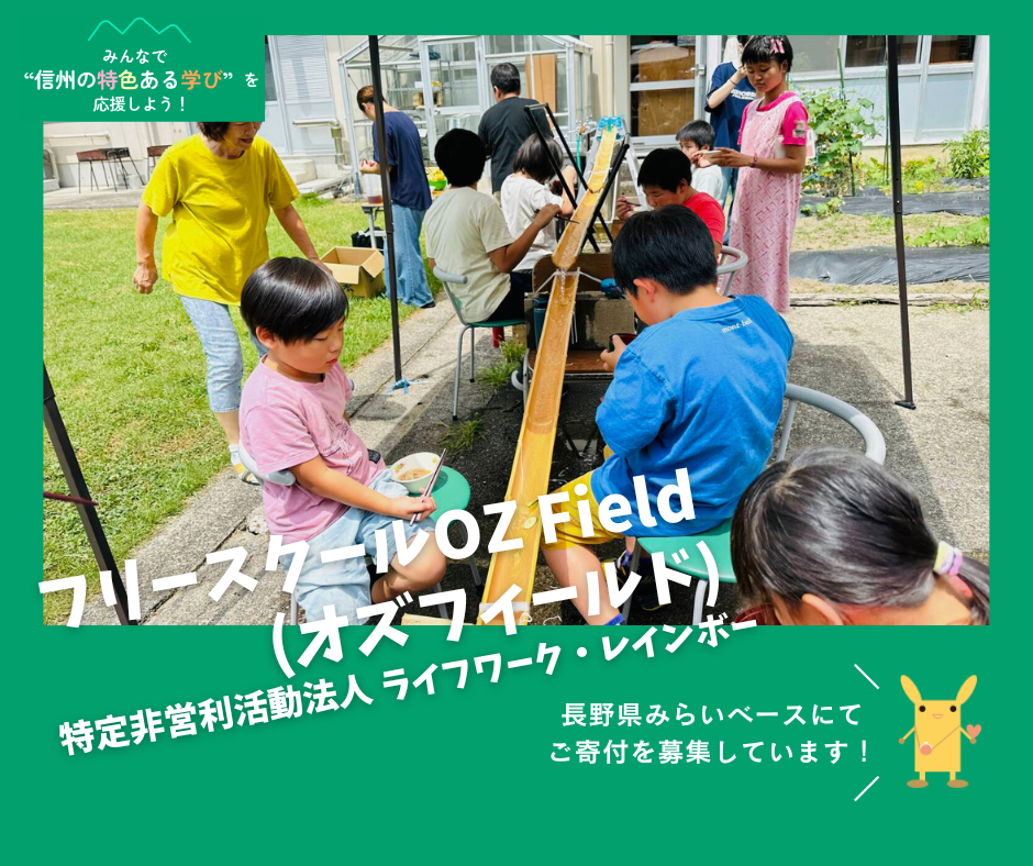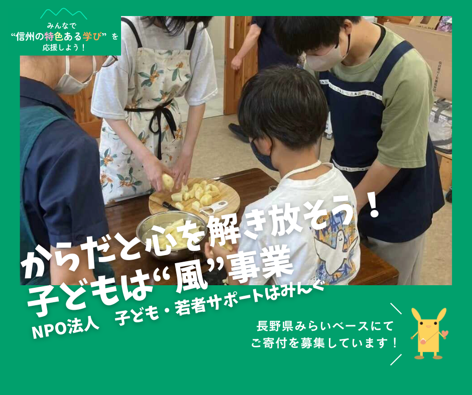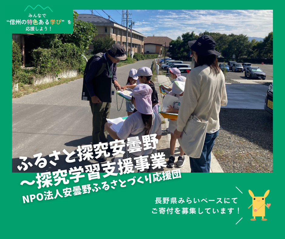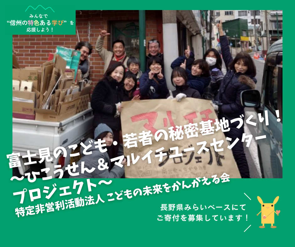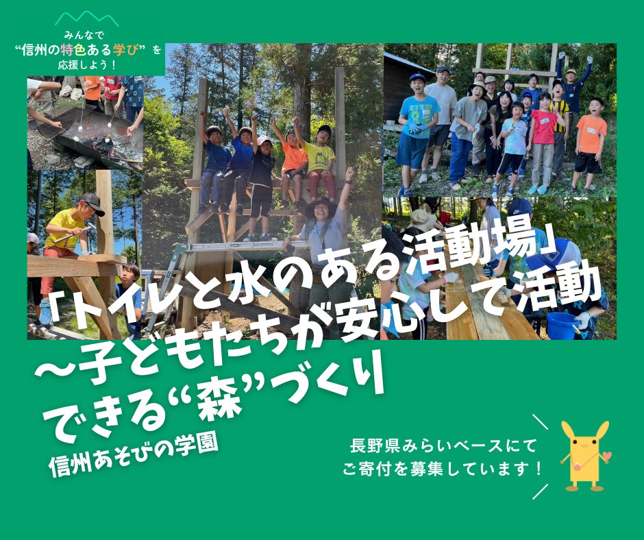 公益財団法人長野県みらい基金では長野県と協働し、こういった「信州の特色ある学び」の取り組みを支援するため、公共的活動応援サイト「長野県みらいベース」において寄付を集め、子どもたちが主体的に学び続けられる環境づくりを進めています。