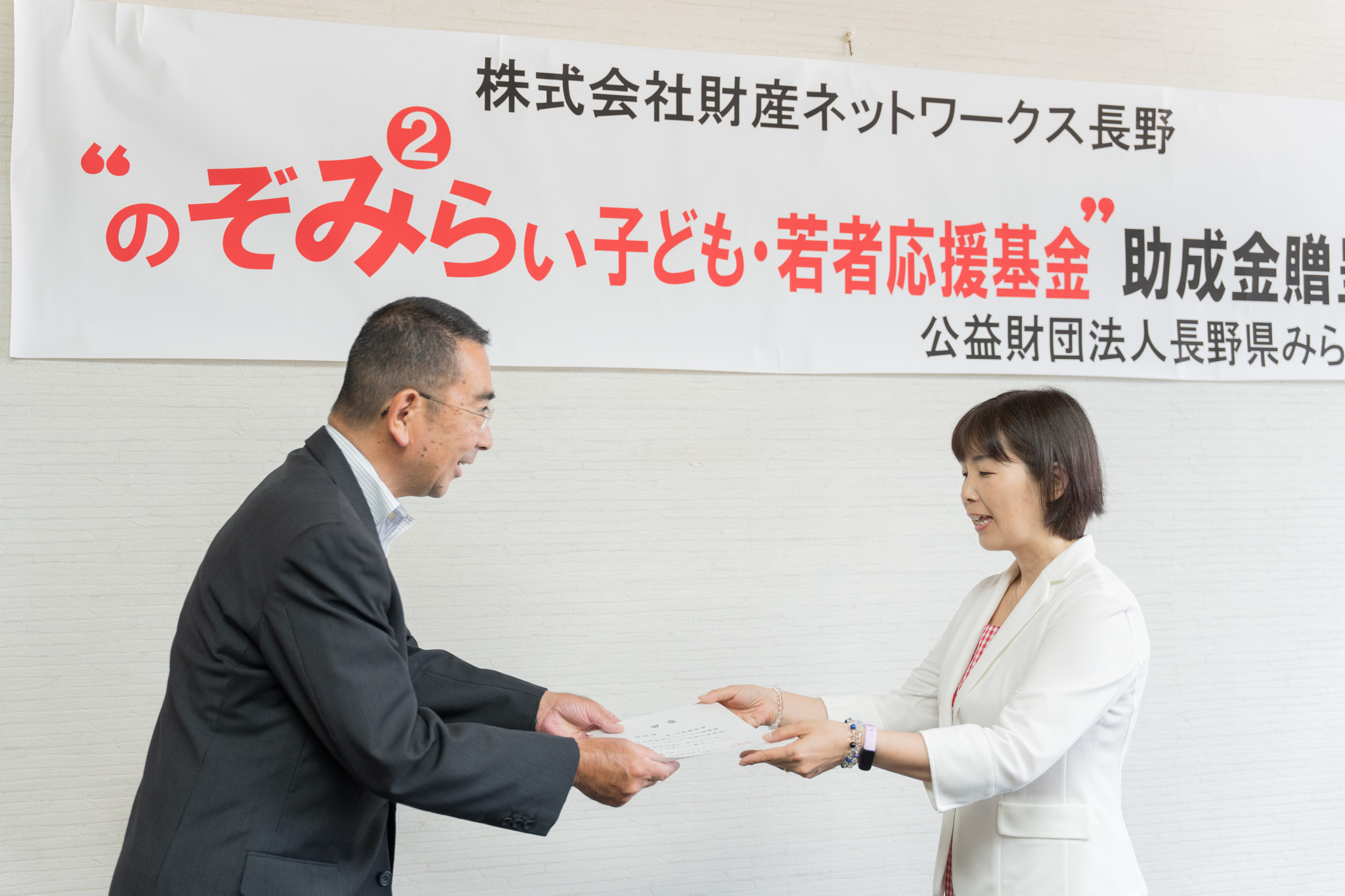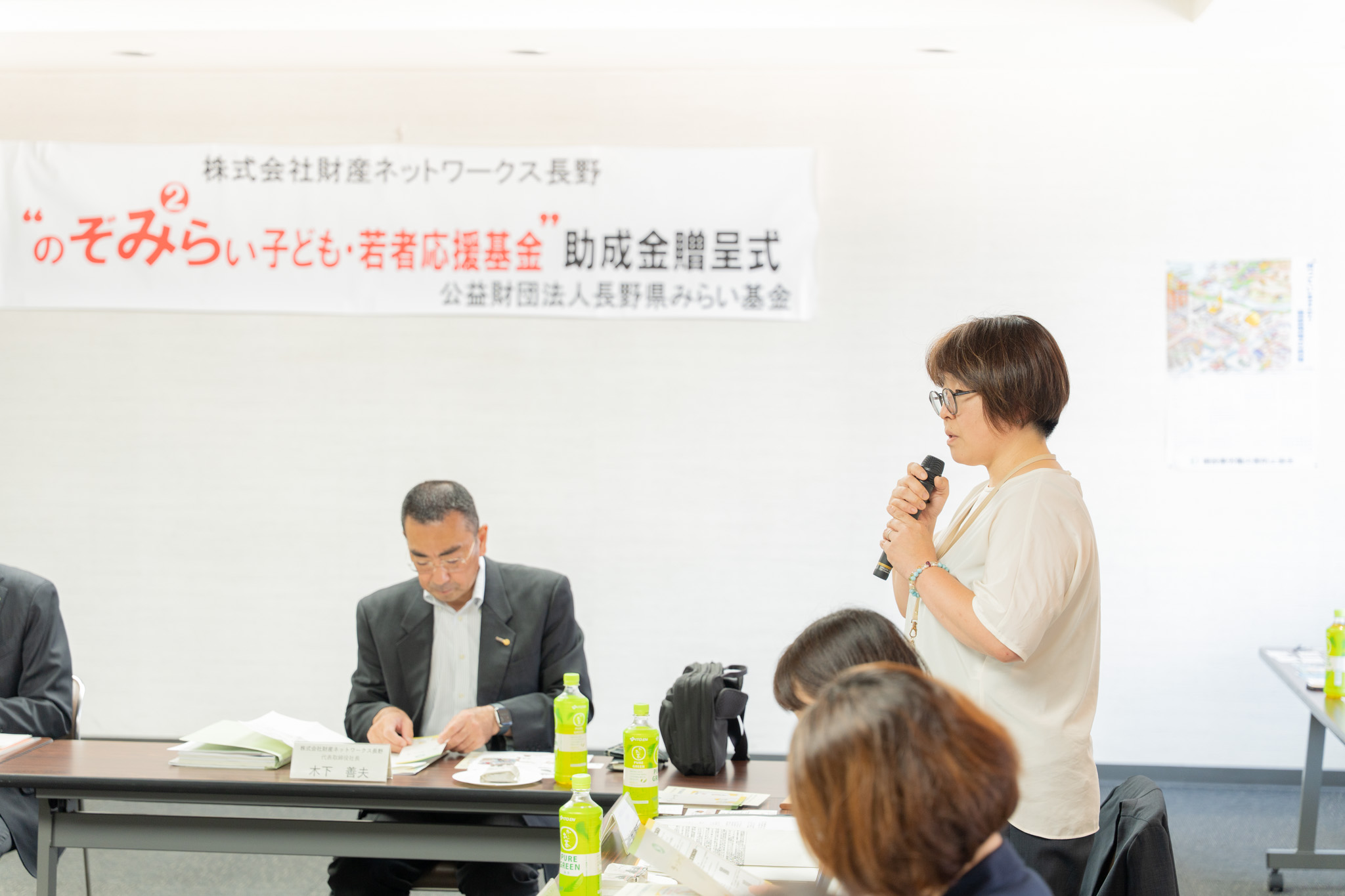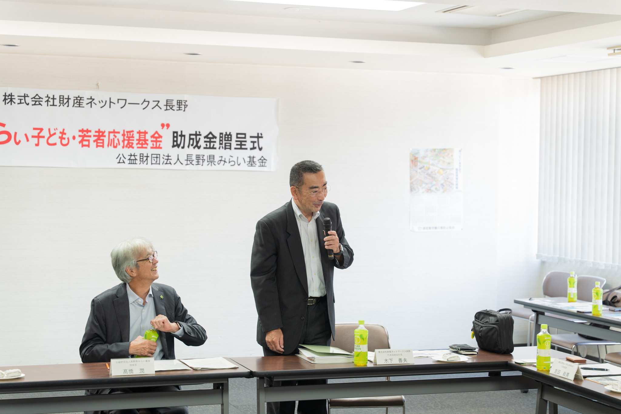 本日の贈呈式では、基金創設者である財産ネットワークス長野 代表取締役社長 木下様から「モノは豊かになっているのに、子育てや教育で大変な思いをしている家族がいます。モノはあっても心が貧しい状況を何とか支えたい。皆さんの活動がその助けとなることを願っています」という、心からのメッセージをいただきました。