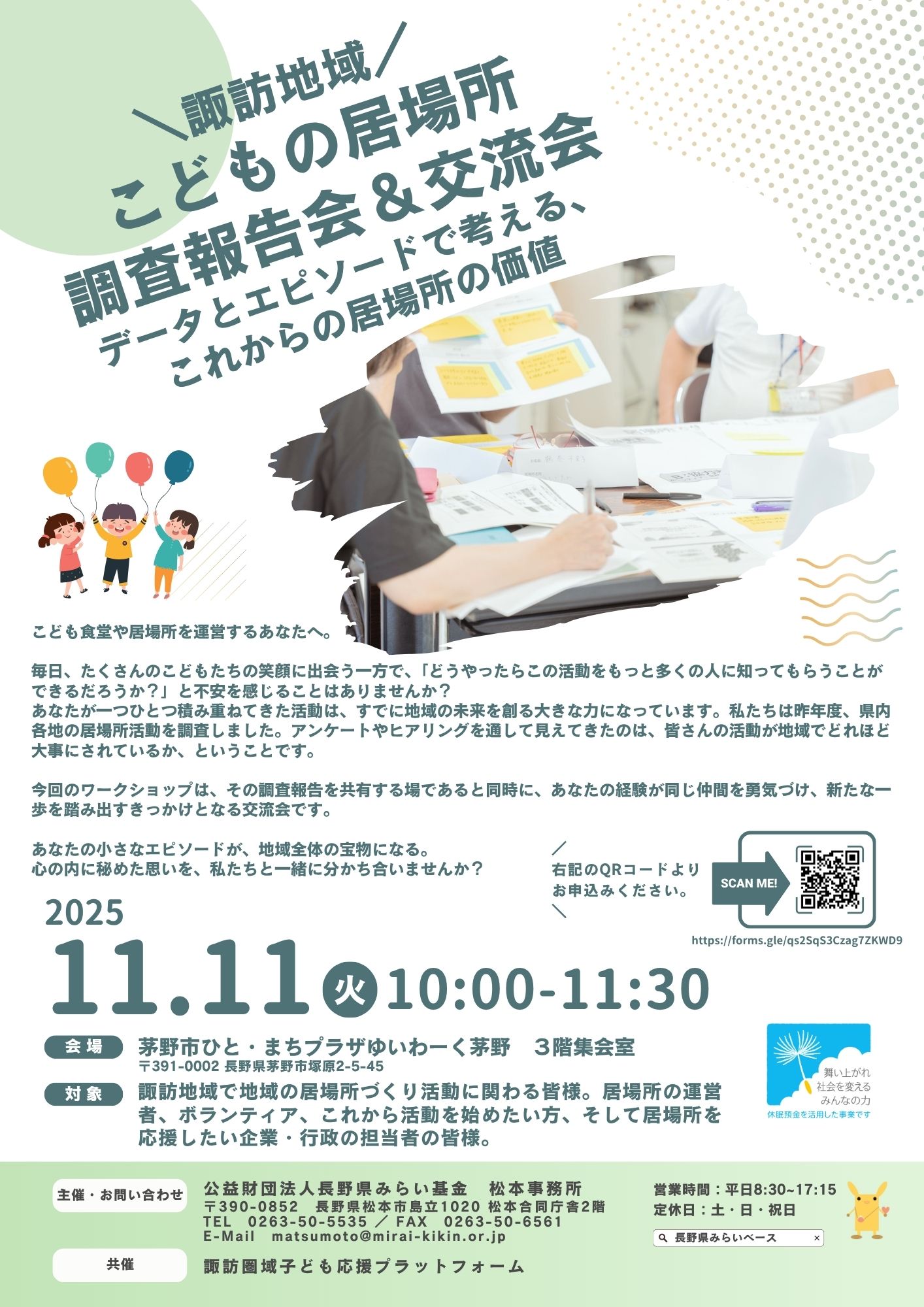 - 共催: 諏訪圏域子ども応援プラットフォーム