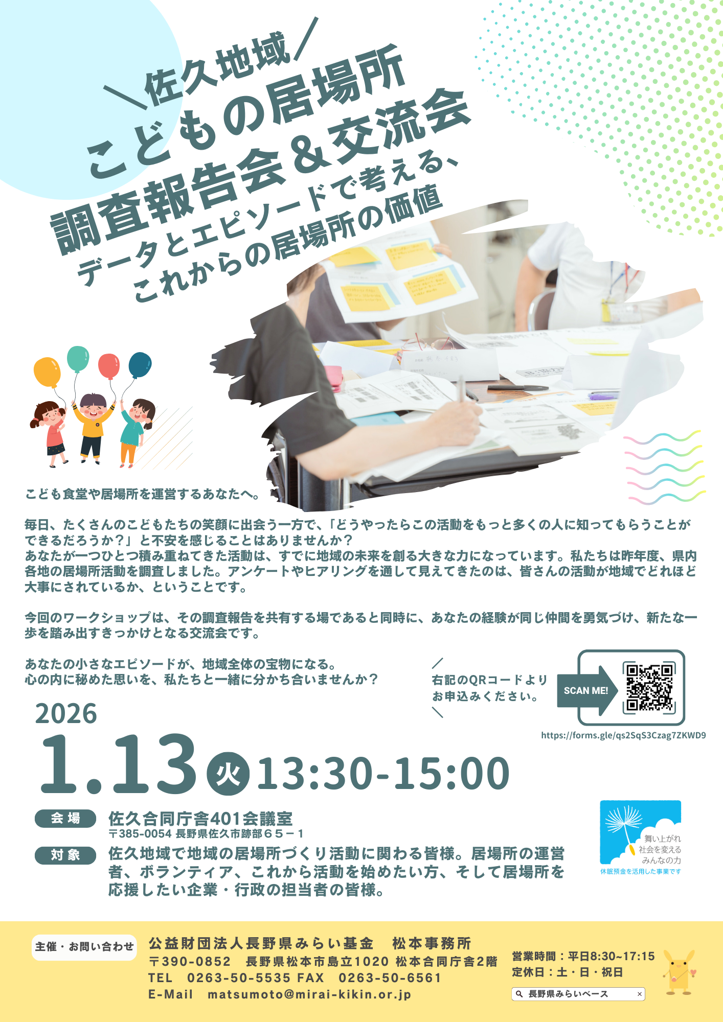 こどもの居場所調査報告会&交流会 ~データとエピソードで考える、これからの居場所の価値~
